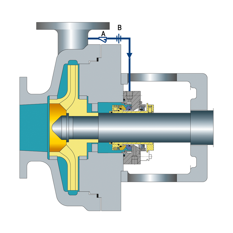 Integral (internal) recirculation from the pump discharge to the seal chamber.