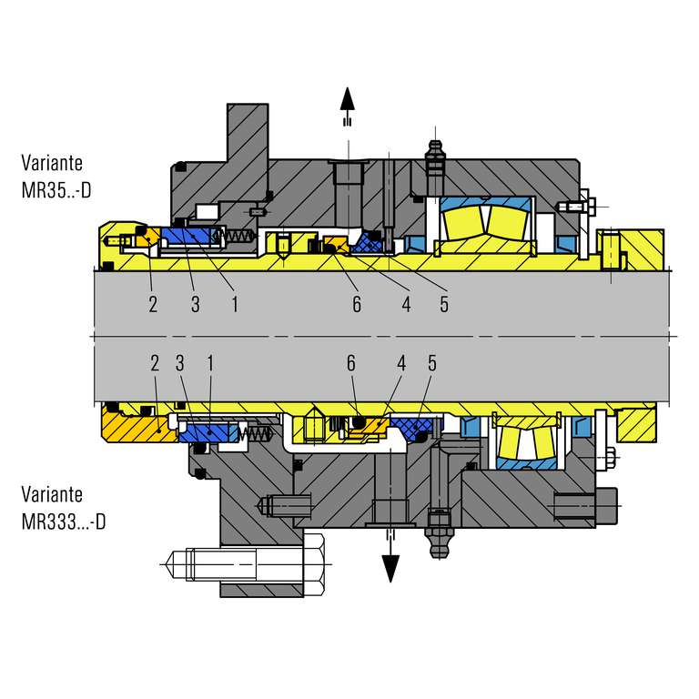 • Shaft sleeve not in contact with product (with standard diameters)